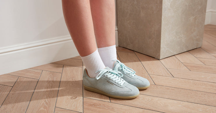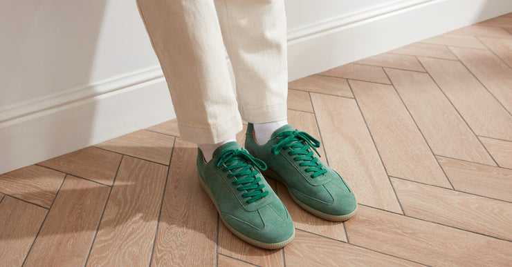 The Travis Indoor Sneaker is an elegant shoe in beige made of calfskin suede with a lining of organic leather. The retro sole ensures high wearing comfort, while the timeless design makes it wearable all year round.