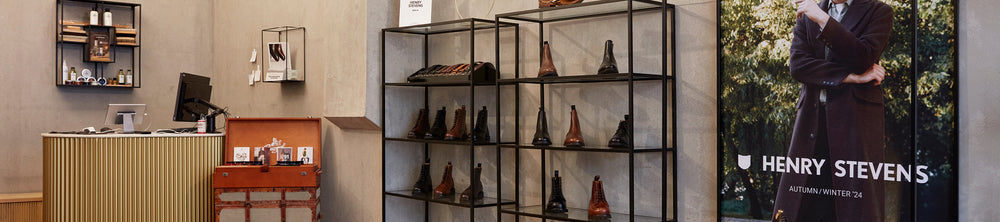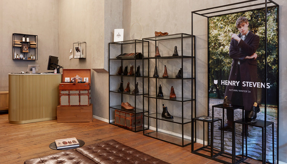 From care creams and brushes to shoe trees and shoe horns to fine leather belts, socks, and gloves, you will find everything you need to complete your look at the Henry Stevens Store in Berlin-Charlottenburg.